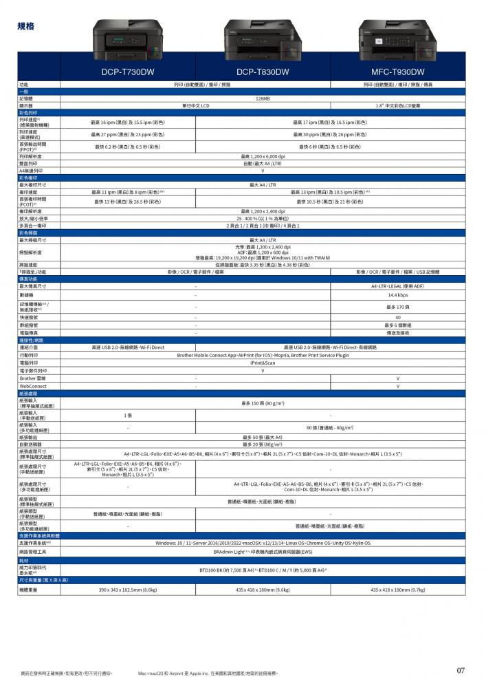 商品編碼:Brother MFC-T930DW
